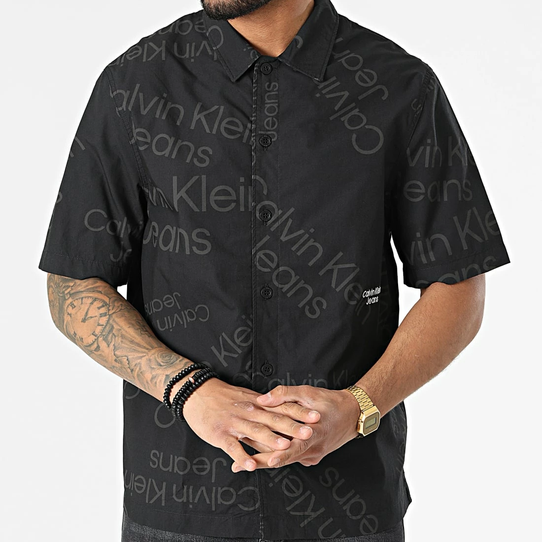 • Chemise à manches courtes tendance avec visuel Calvin Klein Jeans brodé
