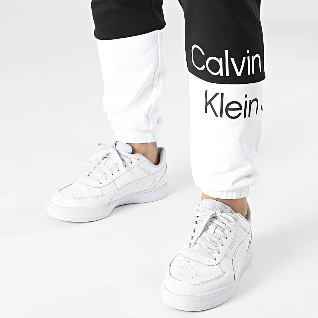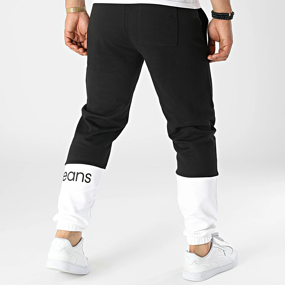 • Pantalon jogging bicolore avec visuel Calvin Klein Jeans imprimé sur la jambe gauche