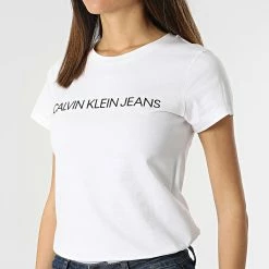 Meilleure vente ❤️ Tee 👚 Shirt Manches Longues Enfant Colour Block 1229 Blanc Noir de Calvin Klein 🛒