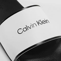 Grosses soldes 🤩 Claquettes Femme Rubber Pool Slide 1382 Black Bright White de Calvin Klein ✔️