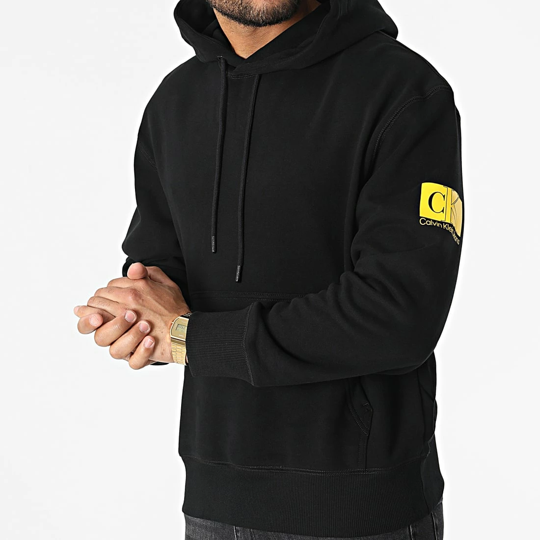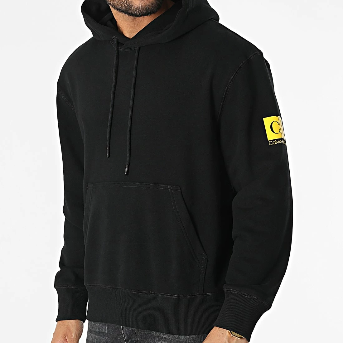 • Sweat capuche brodé et imprimé visuel Calvin Klein Jeans sur la manche et le dos