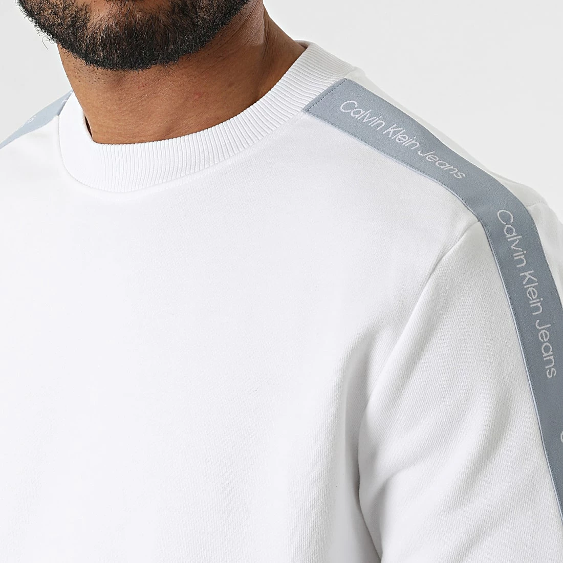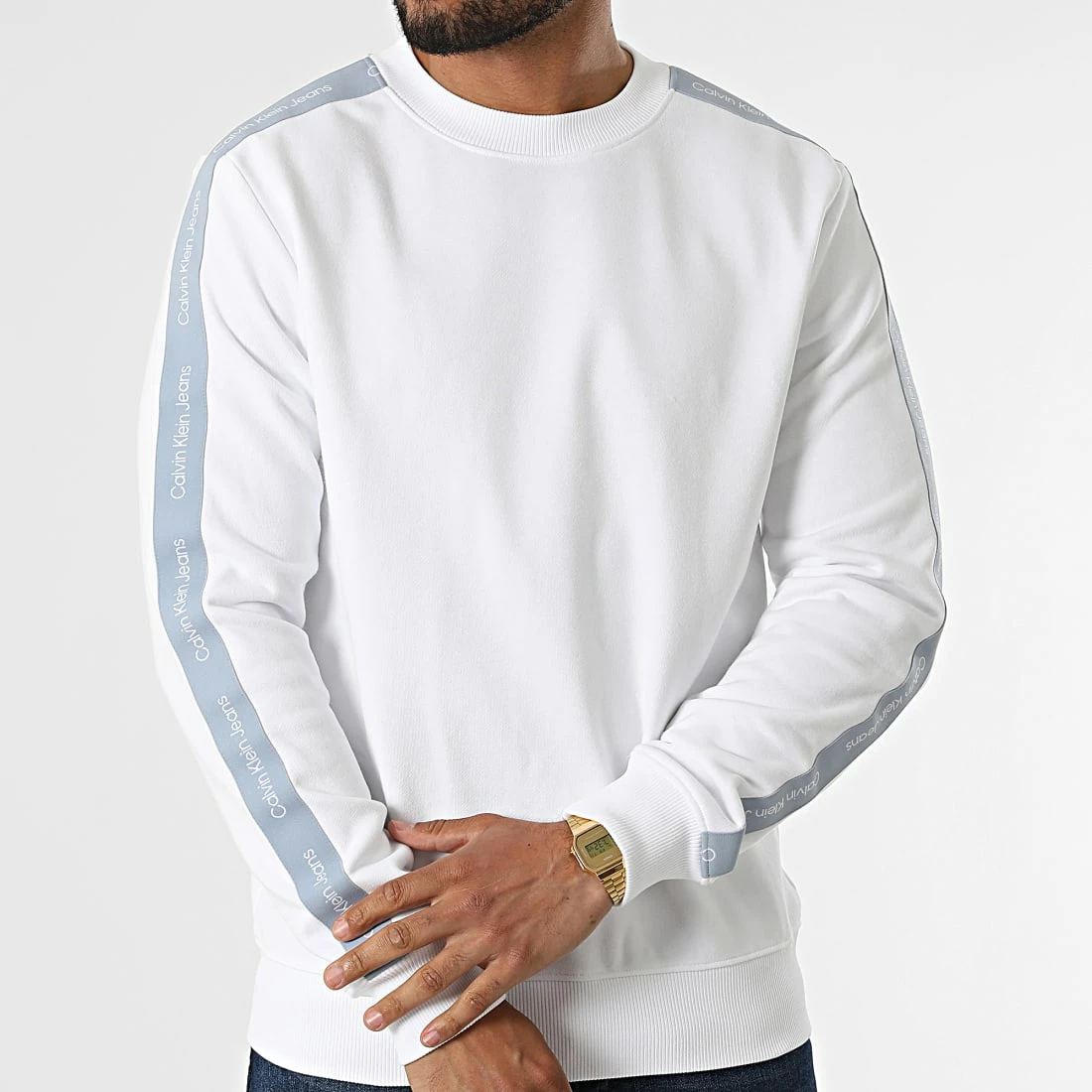 • Sweat crewneck en coton brodé bandes Calvin Klein Jeans sur les manches