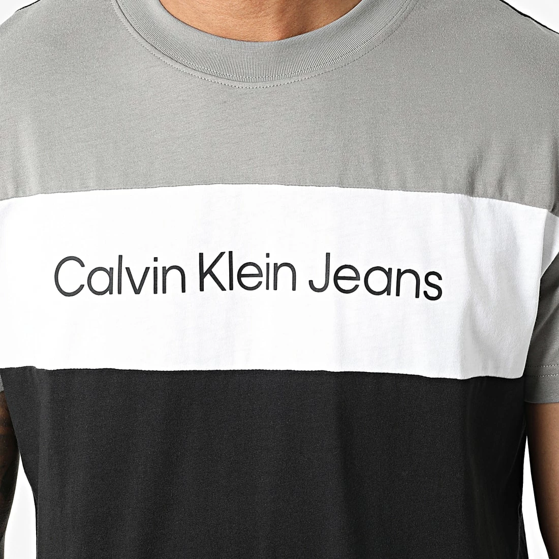 • Tee shirt tricolore avec visuel Calvin Klein Jeans appliqué