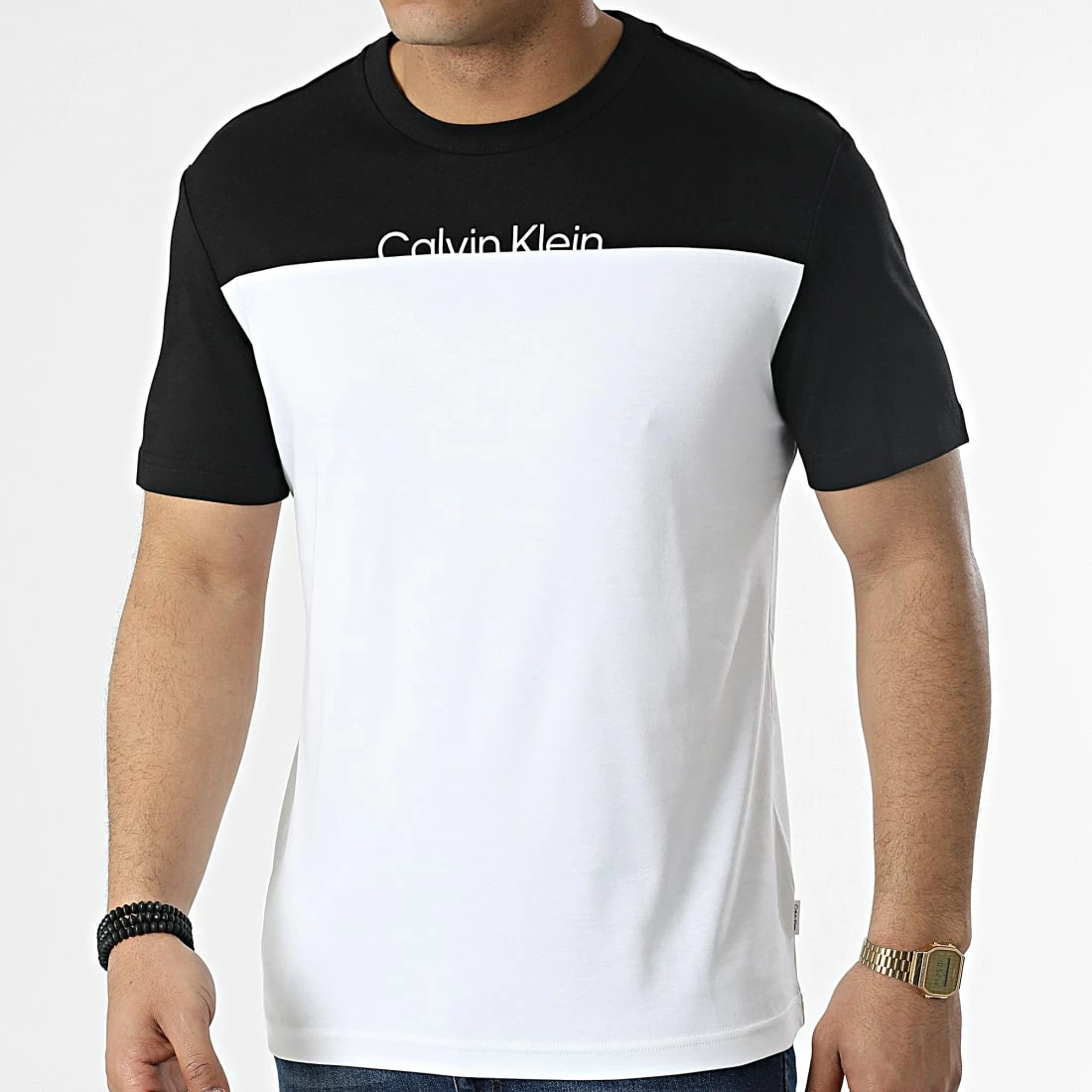 • Tee shirt bicolore avec visuel Calvin Klein appliqué