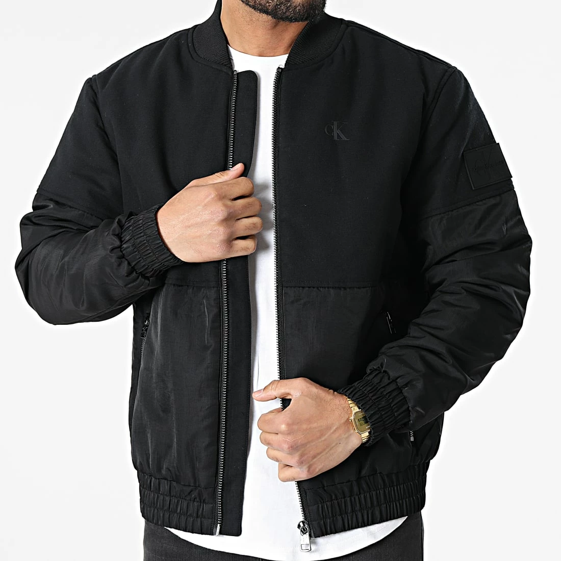 • Veste zippée bi-matière avec logo Calvin Klein imprimé